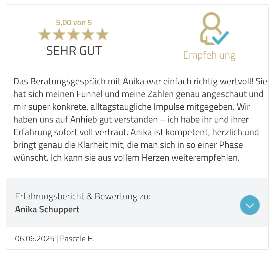 Im Funnel-Check sehe ich mir genau an, wie der Flow deines Funnels verläuft, was die Zahlen darüber aussagen, wo du als erstes Ansetzen solltest.